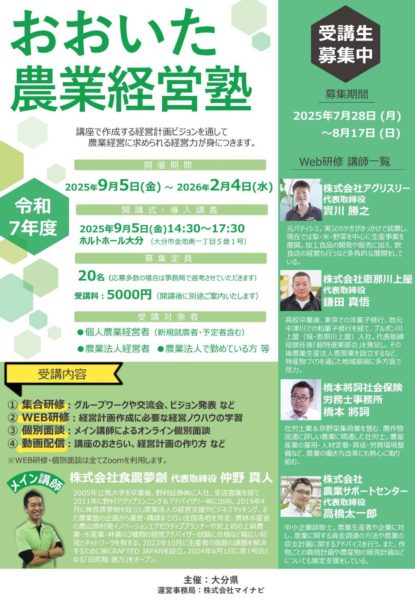 令和7年度おおいた農業経営塾のメイン講師を務めます!